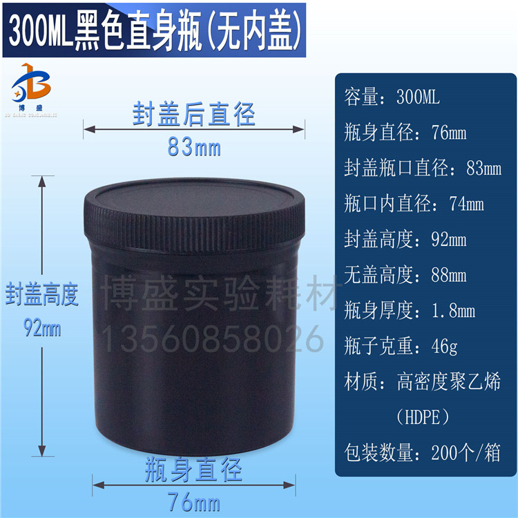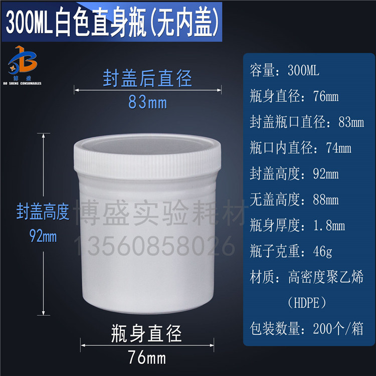 300ML Plastic Straight Body Bottle PE Sample Bottle Chemicals Bottle of acid PH Resistant Bottling Ink Tank White Black Transparent Tank