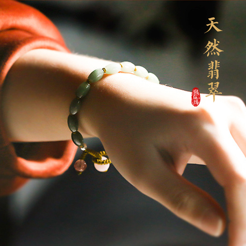 Natural Emerald Handle Female Oil-Qing Emerald Backer Ball Hand Rope String Female Original National Hand Handmade