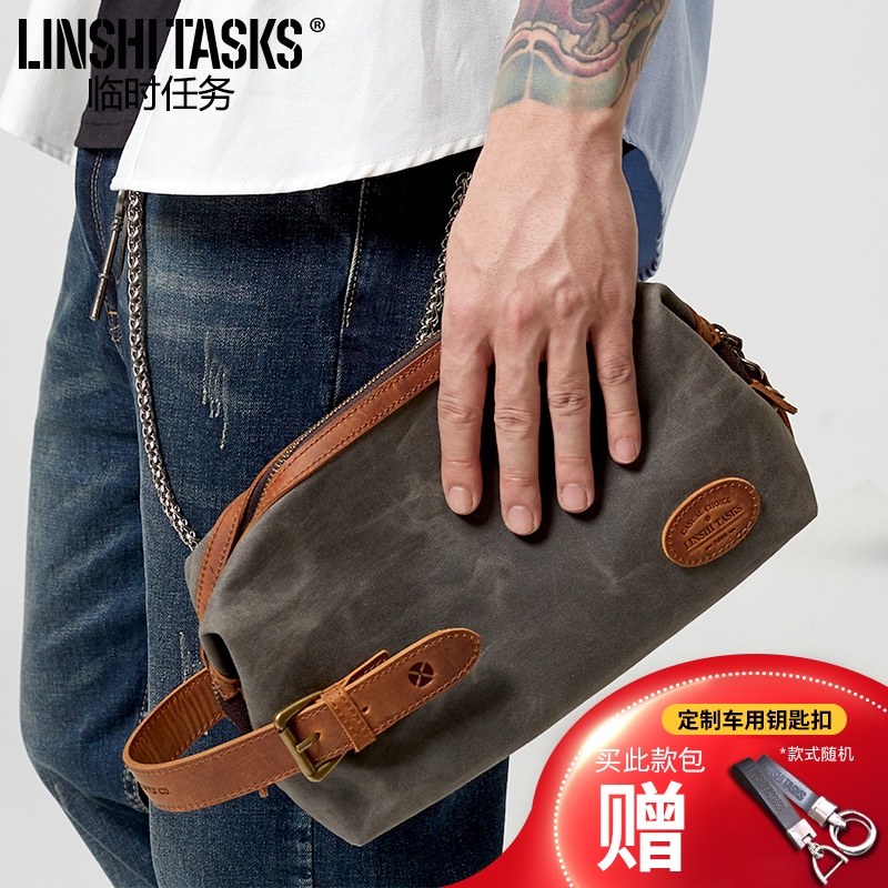 Men's clutch bag new clutch bag large capacity wallet casual canvas leather vintage Korean version clip bag tide customization