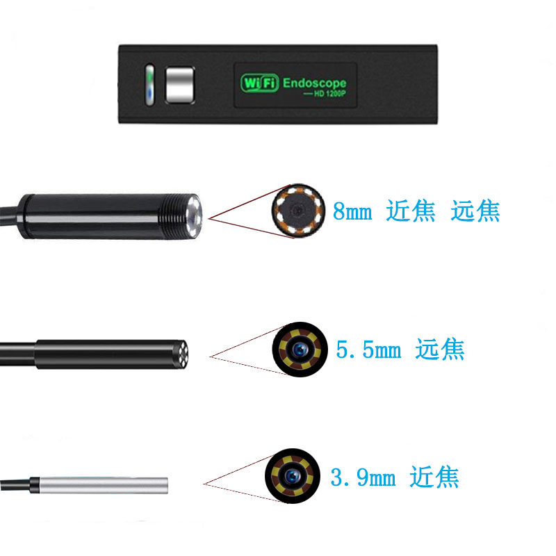 Endoscopic launcher WiFi Box Box Apple Android 720P 720P 1080P 1200P