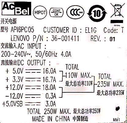 Lenovo Power Supply Conshu AP16PC05 Desktop Computer Power Home Computer Power Supply Rated 250W Stable mute