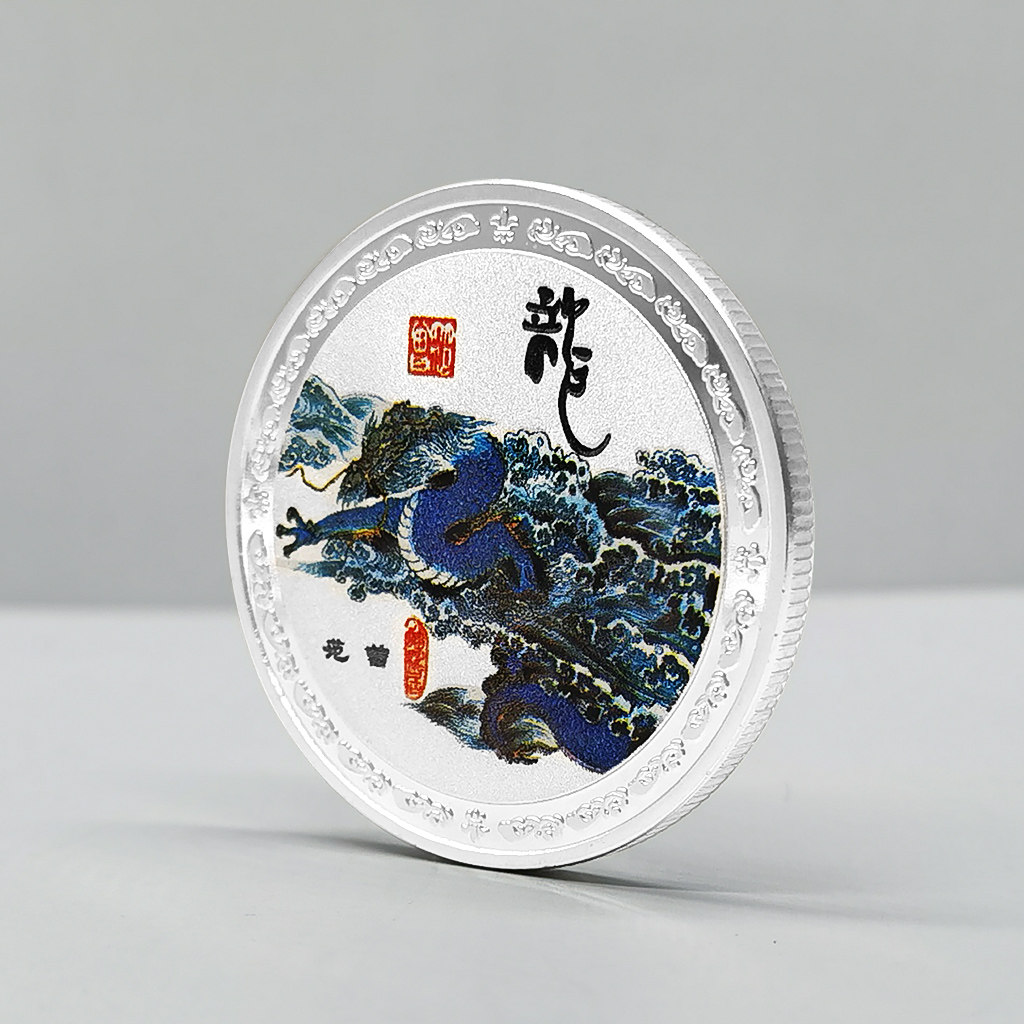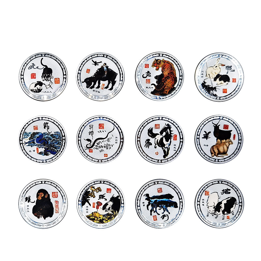 2020 Zodiac Silver Plated Animal Ink Painting Commemorative Medal Dragon Rat Coin Zodiac Chinese Painting Metal Gift