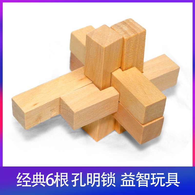 Puzzle Six Kongming Lock Luban Lock Classical Puzzle Leisure Toy Log Color 6 Disassembled