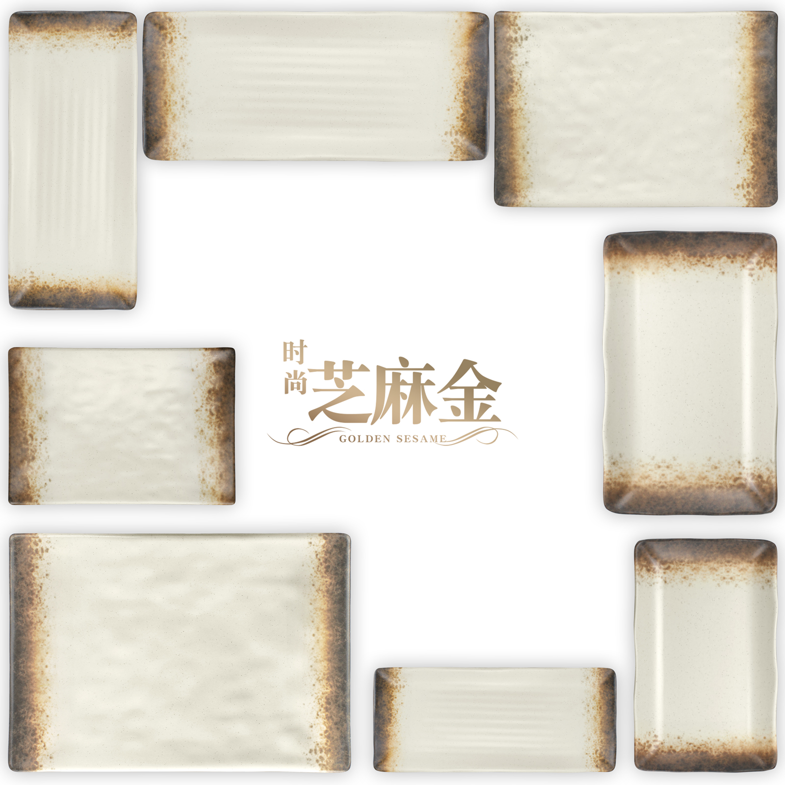 Nordic Featured Melamine South Korea Hot Pot Cutlery Rectangular market Japanese Barbecue Flat Pan Sushi Pan Roast Commercial