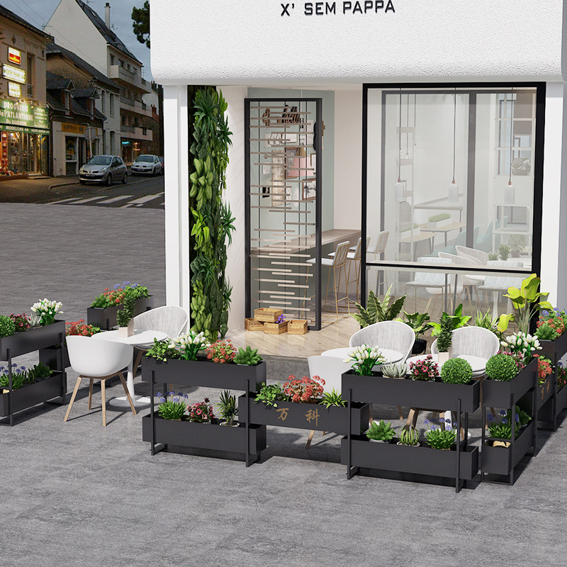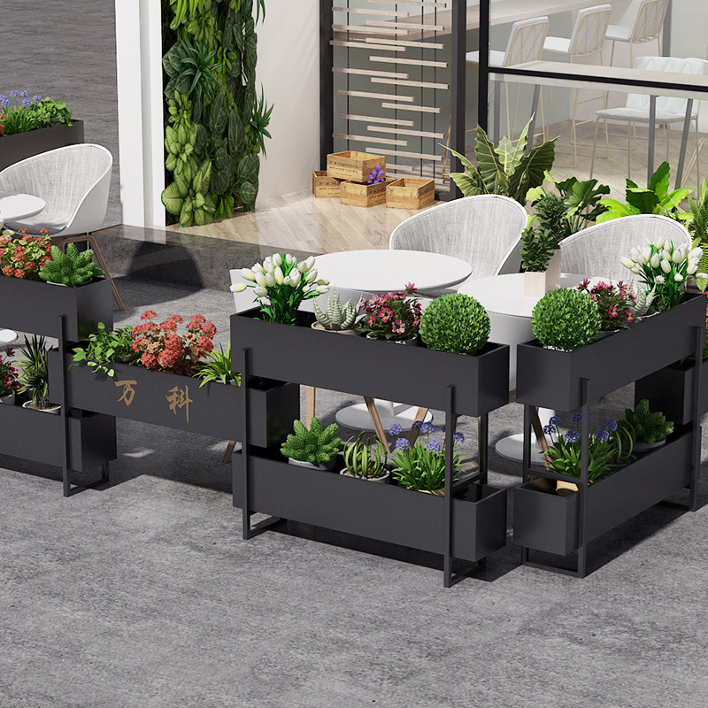 Outdoor Wrought iron partition flower box Multi-layer green plant rack Shopping mall outside the fence flower rack Catering gardening rectangular flower tank