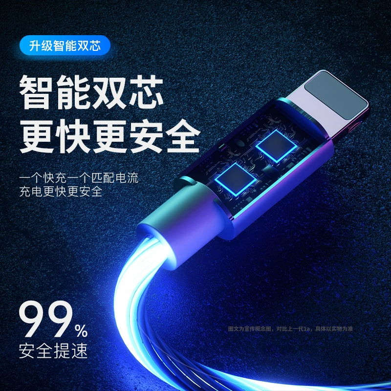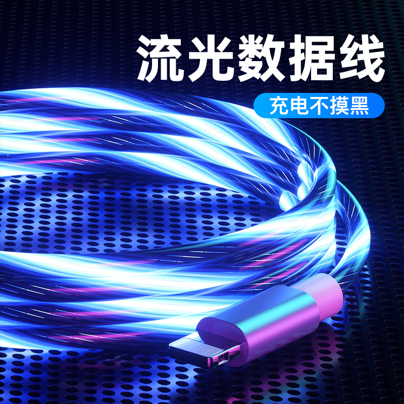 Shiyin Same Style Flowing Light Data Cable Seven Color Luminous Charging Cable Mobile Phone Running Horse Light Car Fast Charging Flash for Apple Android Type-C Flash Net Red Magic Light Atmosphere 3-in-1