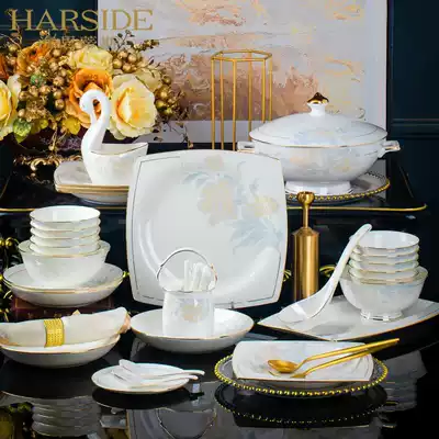 HARSIDE Jingdezhen bone china tableware set bowls and dishes free to match bowls and dishes combination DIY single product tracing gold and elegance