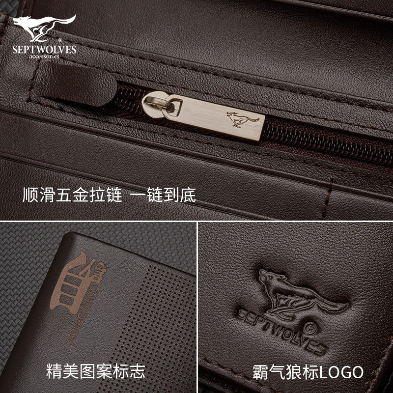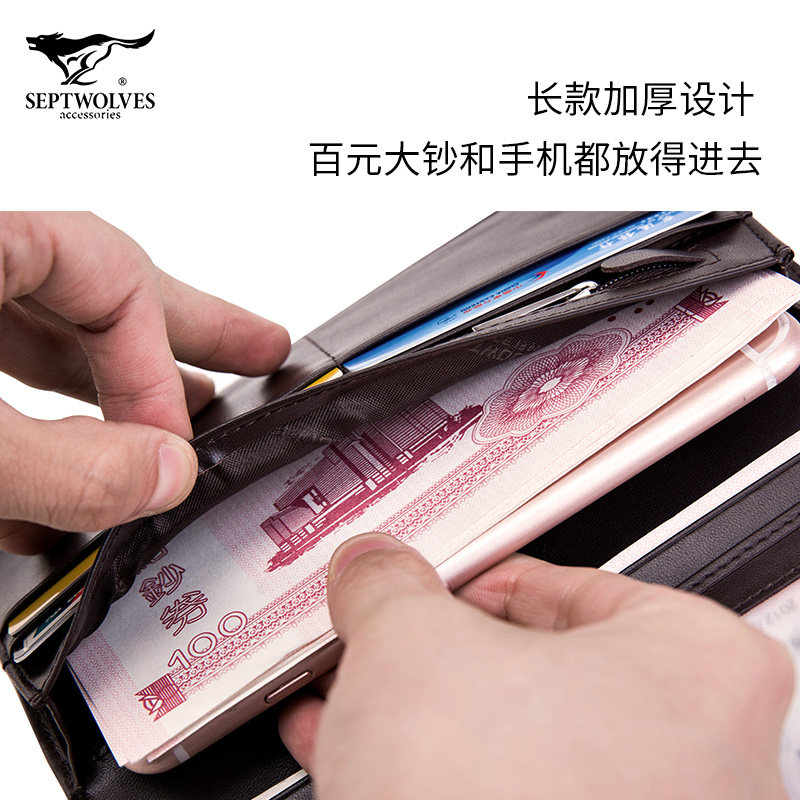 Septwolves men's wallet tide brand men's long version men's leather wallet 2021 new first layer soft leather wallet