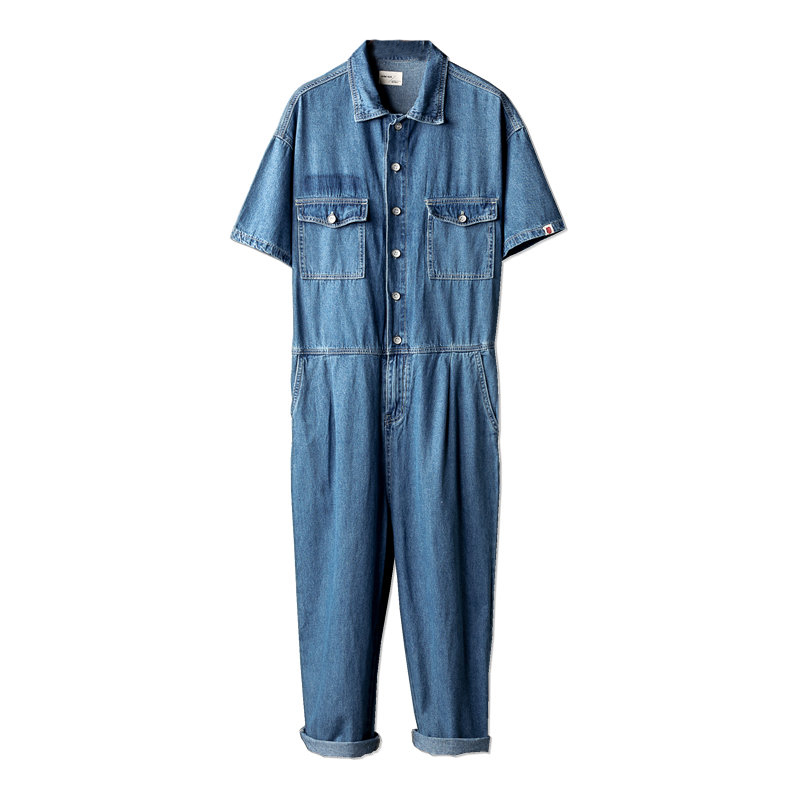 Retro day series Thin Jeans Short Sleeve Jacket Suit Loose one-piece suit men's overalls Pants