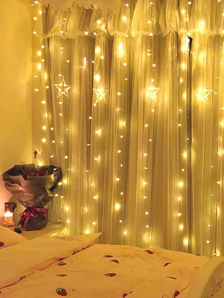 led curtain light room full of stars decorative light string star small light string girl heart net red room layout wind floating