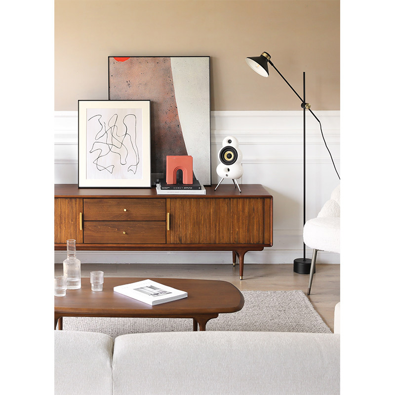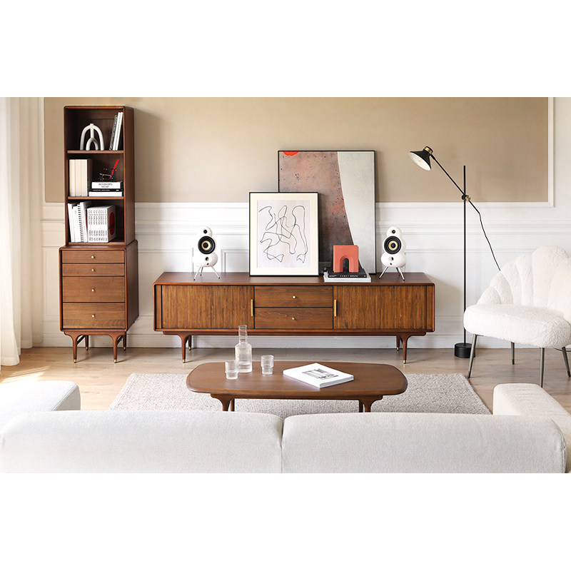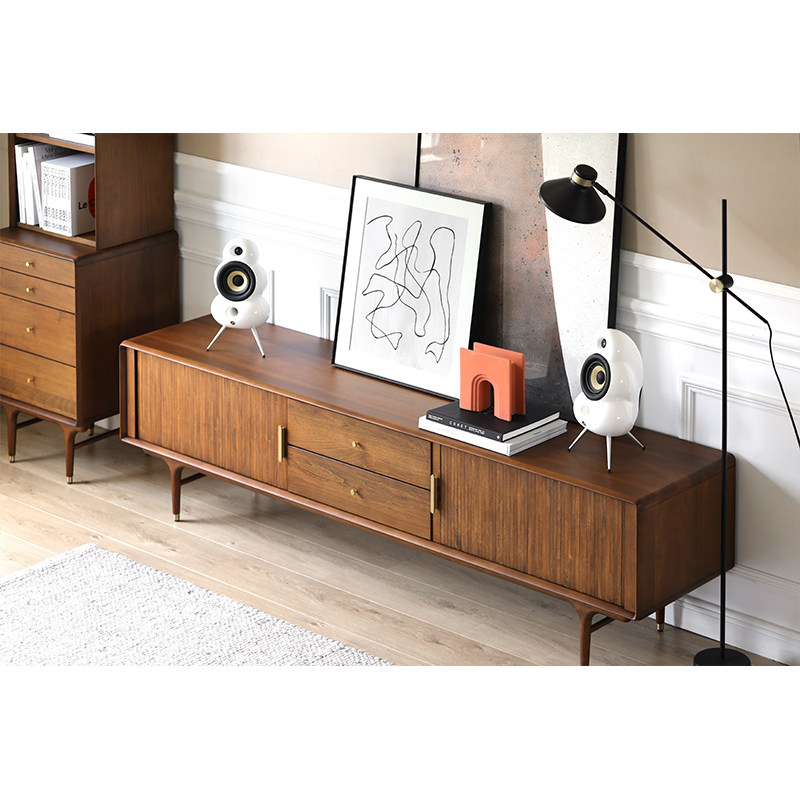 Nordic Expression Day-Style Medieval Import E10 Solid Wood Organ Roll Curtain Door Drawer TV Cabinet Walnuts Wood Color