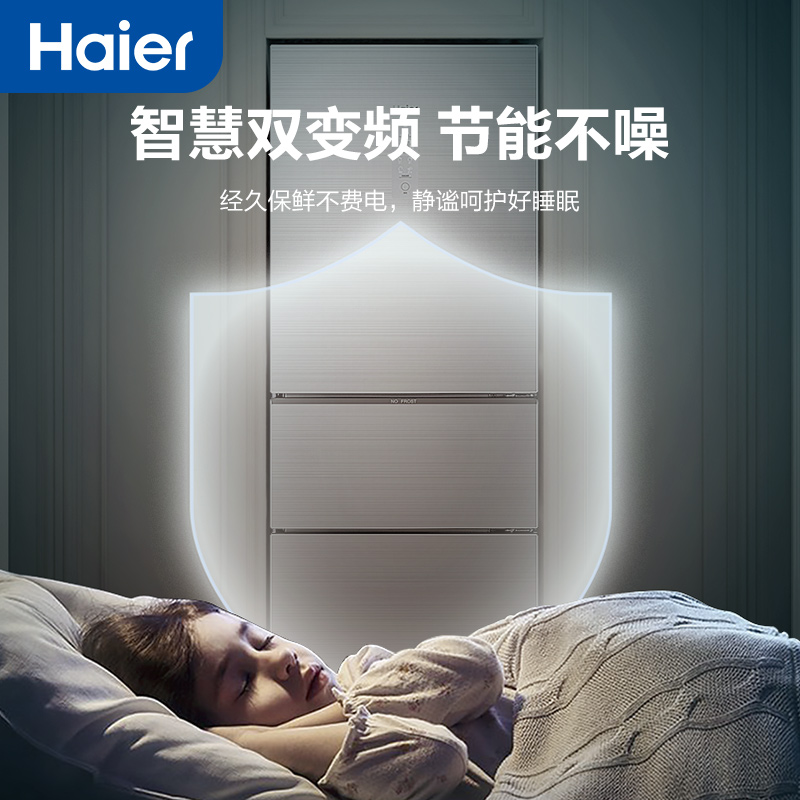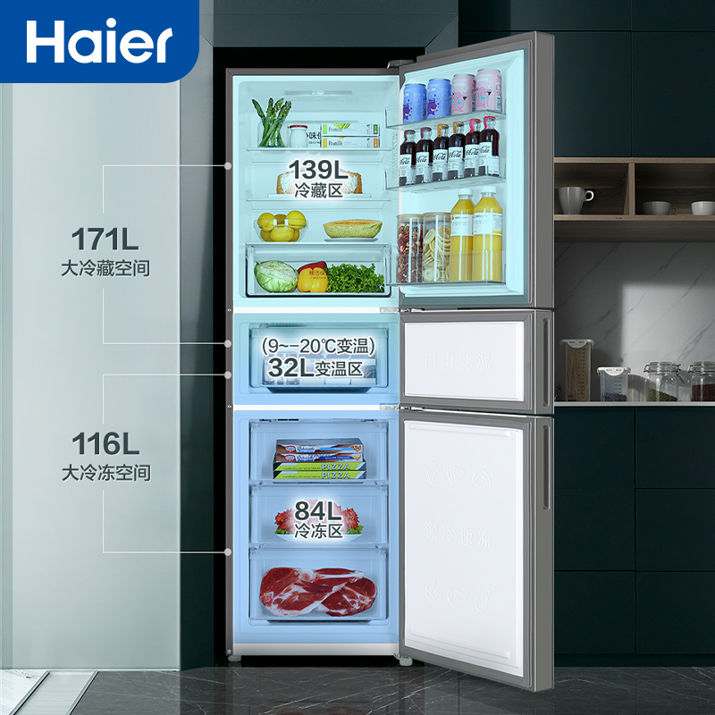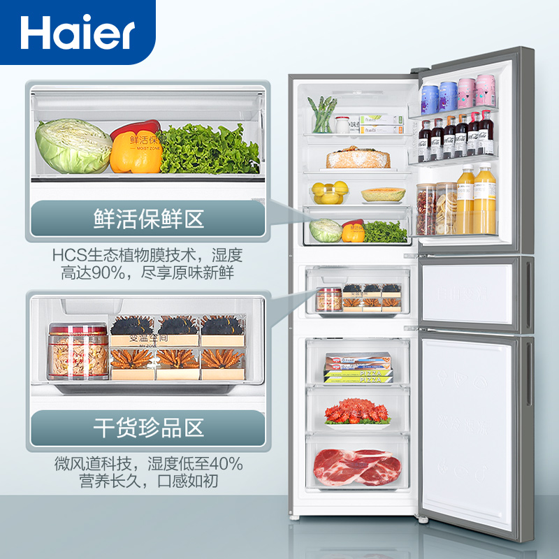Haier 255 liter three-door frequency conversion air-cooled frost-free energy saving and power saving mother and child domestic rental small electric refrigerator