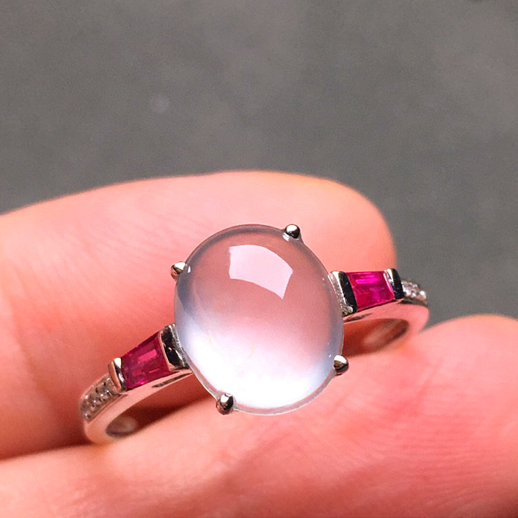 Emerald jade ring natural high ice seed egg noodles crystal clear with a 18K gold companion drilling girl with certificate A stock
