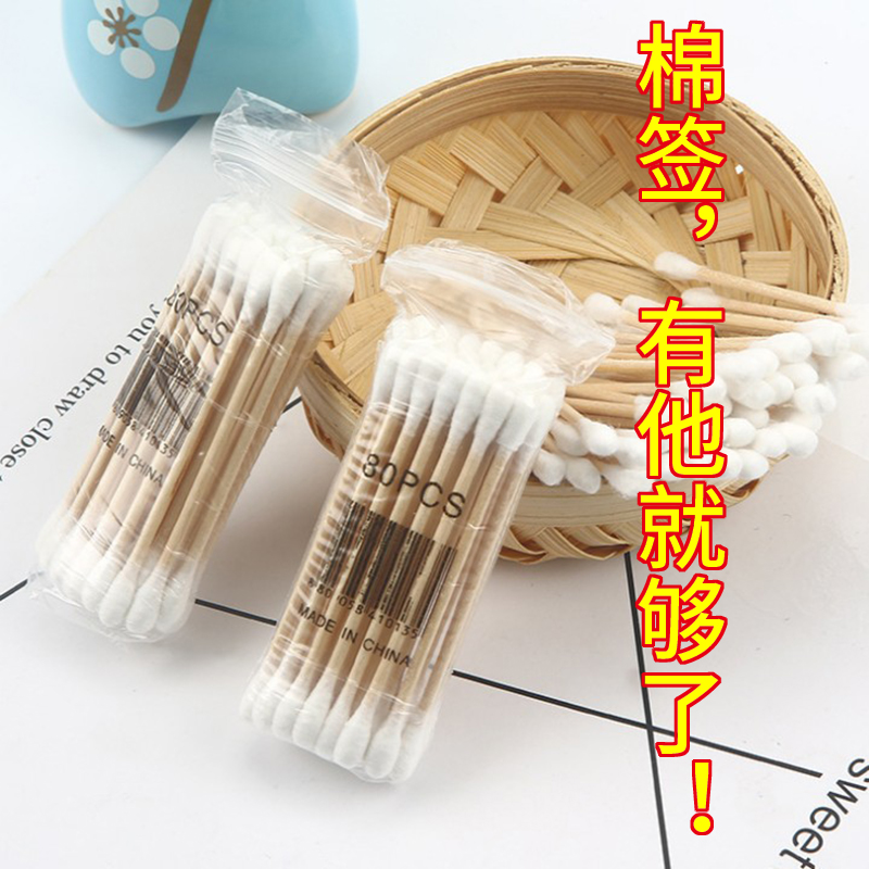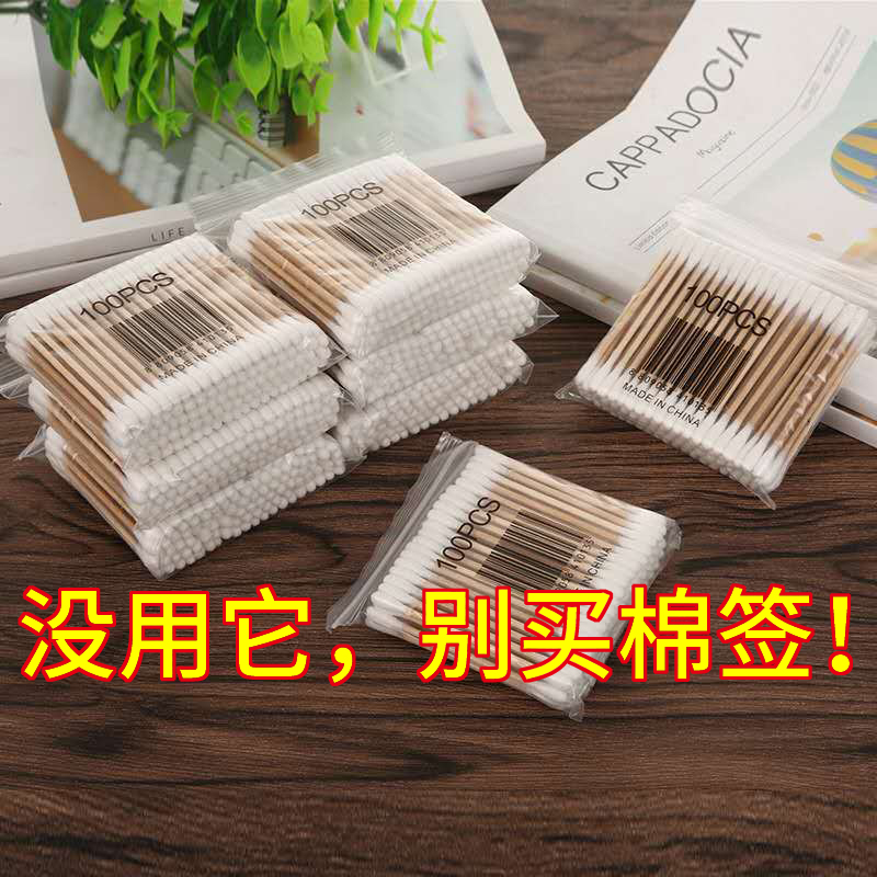 Makeup-free cotton bar to pull ears spiral double head with round wooden rod disposable makeup tip cotton