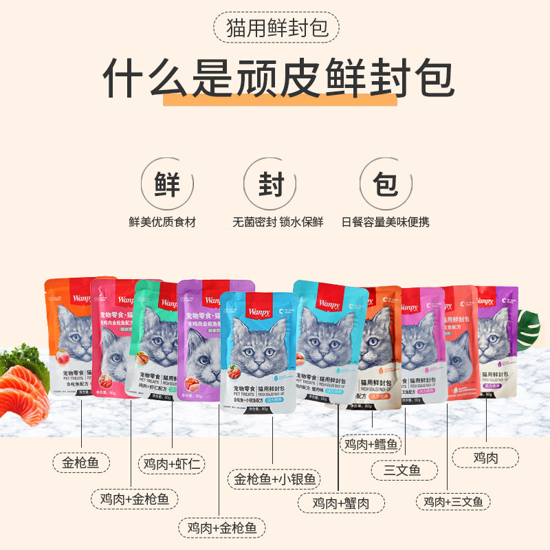 Fresh Packet Mixed Flavor 80g Fresh Packet Tuna 80g Fresh Packet Tuna Salmon 80g Fresh Packet Tuna Small Whitebait 80g Fresh Packet Chicken 80g Fresh Packet