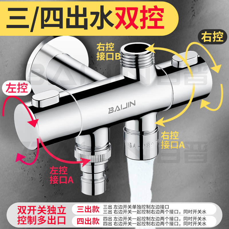 Baijin toilet with spray gun companion faucet three-way angle valve female washing flusher one in three out four-way water divider