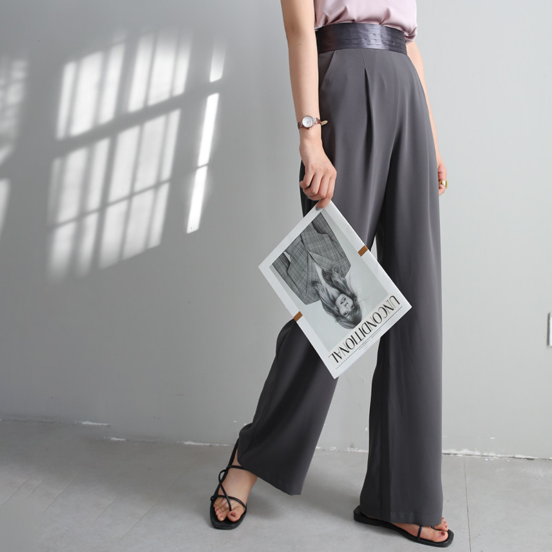 Warmo air mopping wide-leg pants women's summer thin section high waist drape loose slim straight suit pants trousers