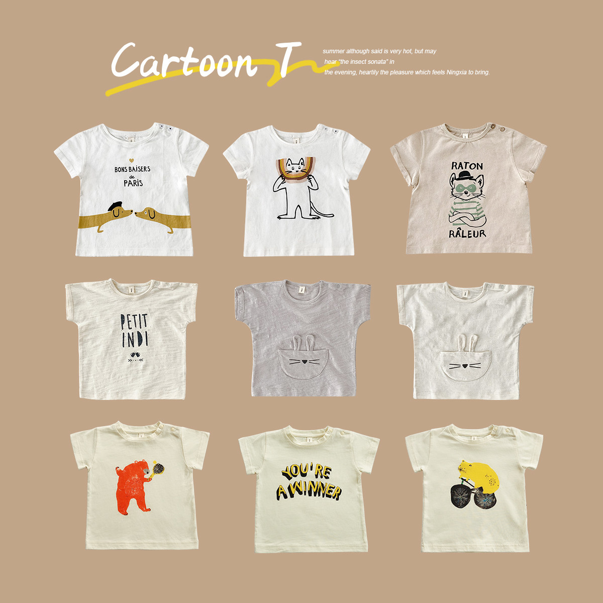 2020 Summer New Baby Foreign Pie Pure Cotton Round Collar T-shirt Baby Summer Short Sleeve Blouse Baby Short Sleeve T