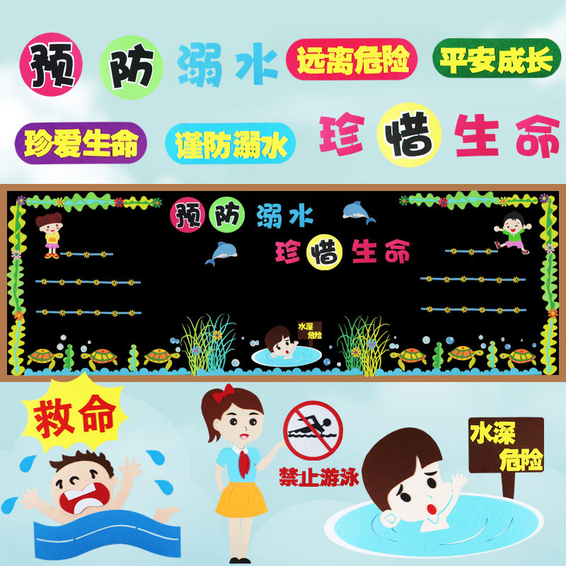 Prevention Drowning Subject Black Board Newspaper Treasures Love Life Safety Education Primary And Secondary School Classroom Placement Class Cultural Wall Sticker