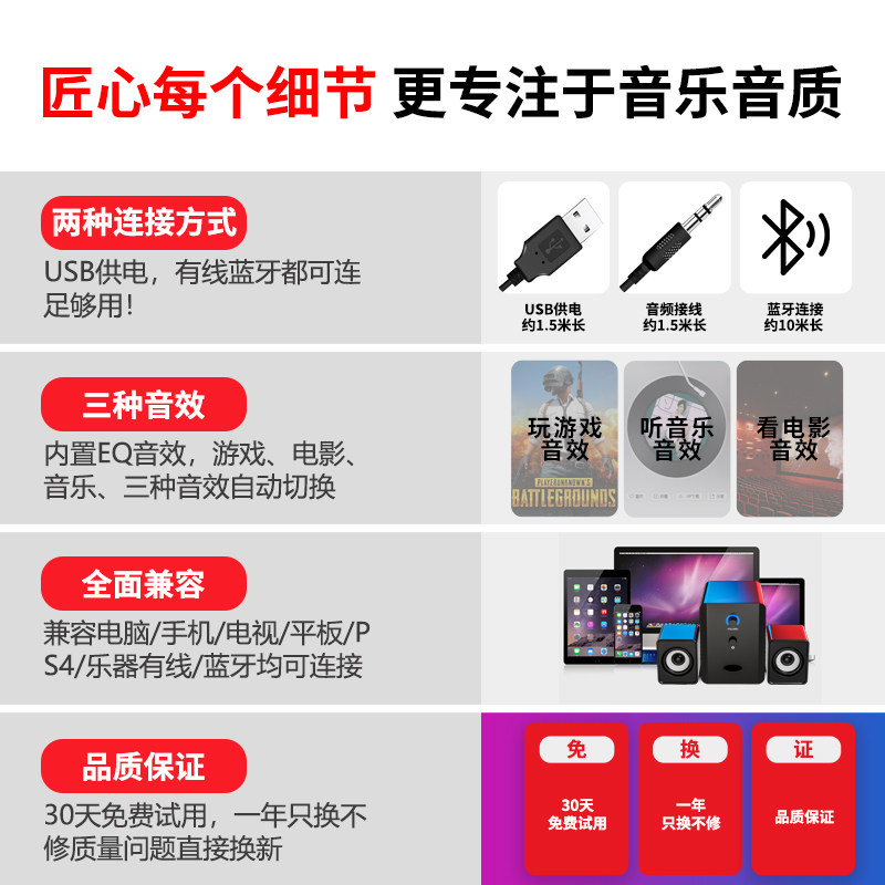 Black (wired connection + normal sound + dual speaker + 20% buyer choice) for ordinary home Black (wired connection + upgraded sound + double speaker + 25% buyer choice) Suitable for computer office Black (wired connection + HD sound + dual speaker + 30% buyer choice) Suitable for using listening to songs Watch movies Quality black (wired connection + dual speaker + adjust volume + colorful lights) Ivory (wired connection + dual speaker + adjust volume + colorful lights) Quality black (wired connection + dual speaker + adjust volume + Colorful Lights + Independent Switch + Double Vibration Film) Ivory (Wired Connection + Dual Speaker + Adjust Volume + Colorful Light + Independent Switch + Double Vibration Film) Black and White (Wired Connection + Lossless Sound Quality + Independent Woofer + 50% Buyer Choice) For Games Listening to Songs Cinema Elegant Black (Wired Link + Lossless Sound Quality + Independent Woofer + 50% Buyer Choice) Suitable for Games Listening to Songs Cinema Black and White (Bluetooth Cable Dual Use + Lossless Sound Quality + Independent Woofer + 65% Buyer Choice) For Games Listening To Music Theater Elegant Black ( Bluetooth Cable Dual Use + Lossless Sound Quality + Independent Woofer + 65% Buyer's Choice) suitable for games Listening to music Theater