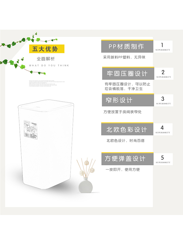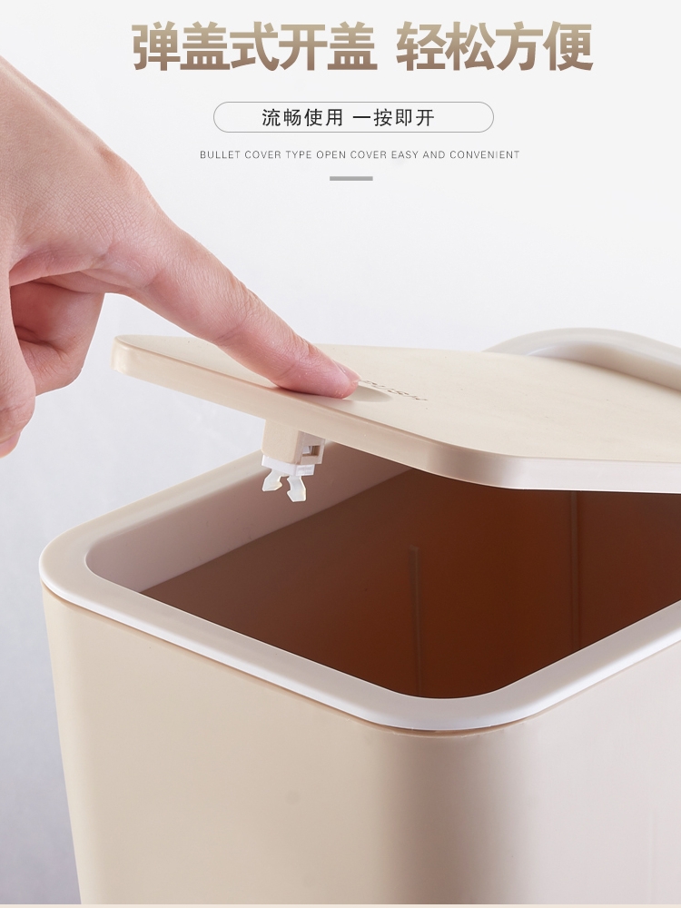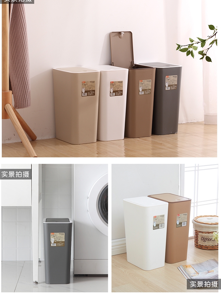 Powder room trash bin Narrow Nordic hand press Living room bedroom kitchen household toilet Small garbage bin classification with lid