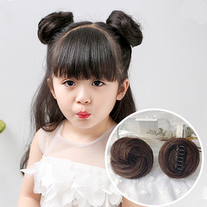 Children's pellet head wig female hair ring flower buds mini semi-catch clip Write a real photo performance wig fake hair bag