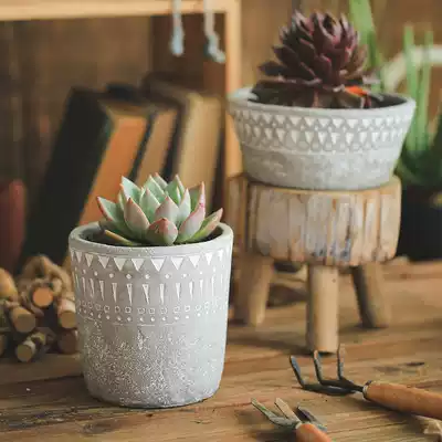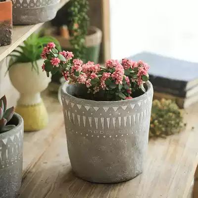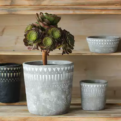 (Seven Mo) Cement color fleshy flowerpot African element soil high-grade plant flower garden decoration decoration