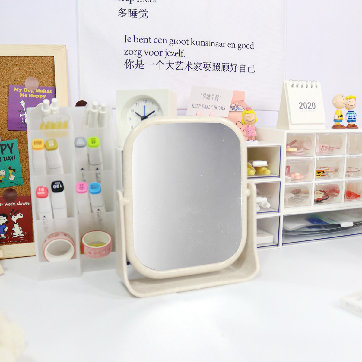 ins Korean wind minimalist bifacial mirror adjustable angle desktop make-up mirror student dorm room desktop mirror make-up mirror