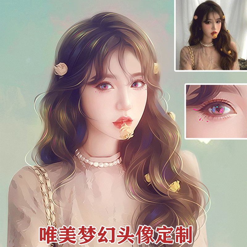 Photo hand-painted avatar custom original couple avatar sketch illustration design cartoon cartoon avatar wedding logo
