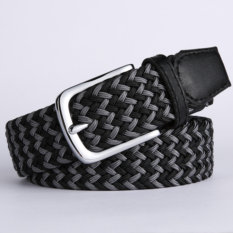 jeep men's trendy two-color elastic knitted soft elastic non-leash canvas nylon woven leather pants waist belt