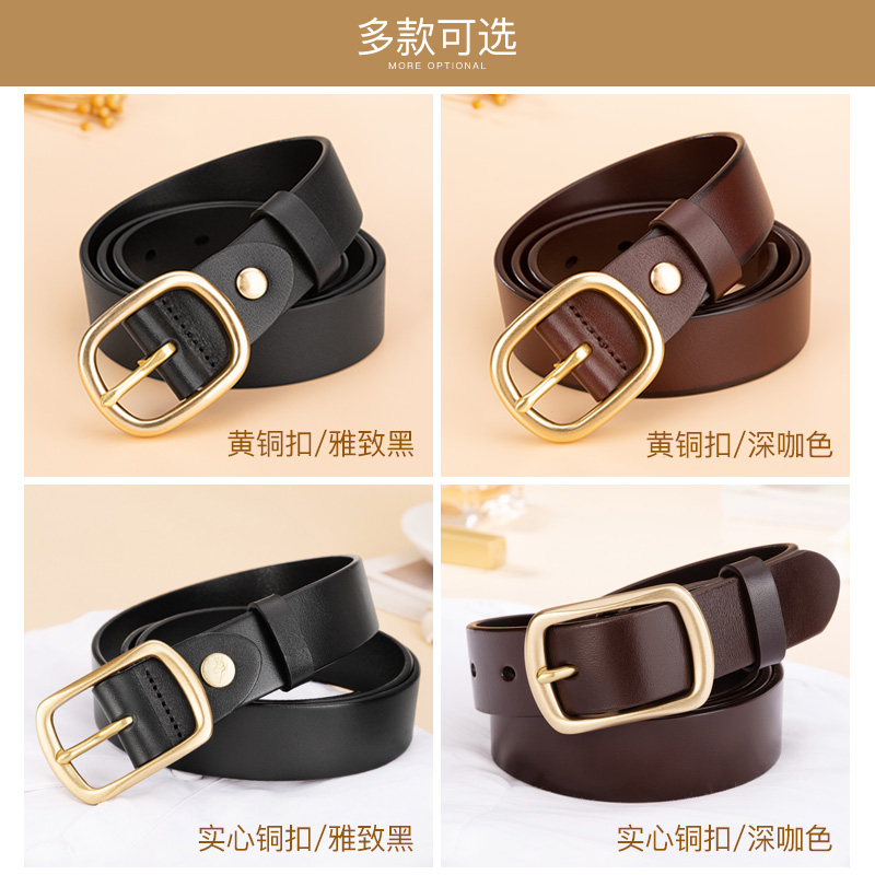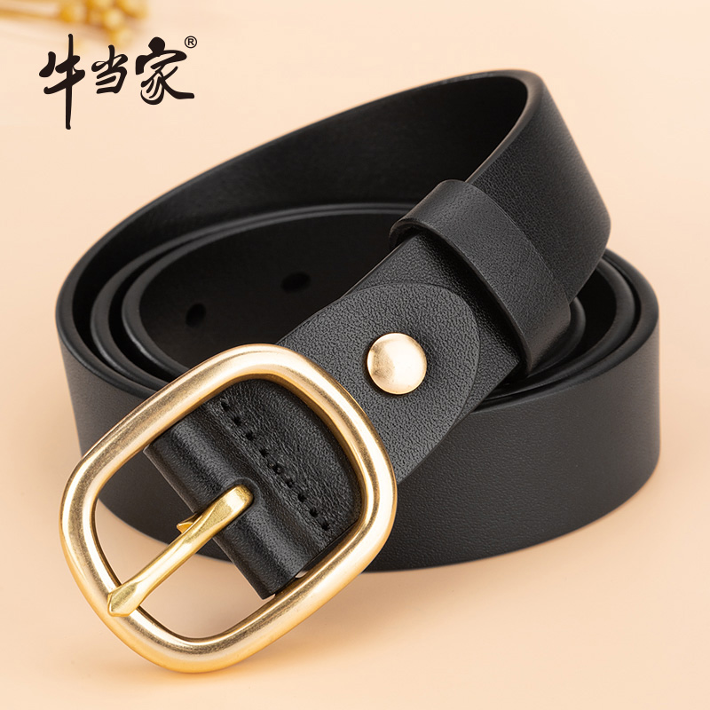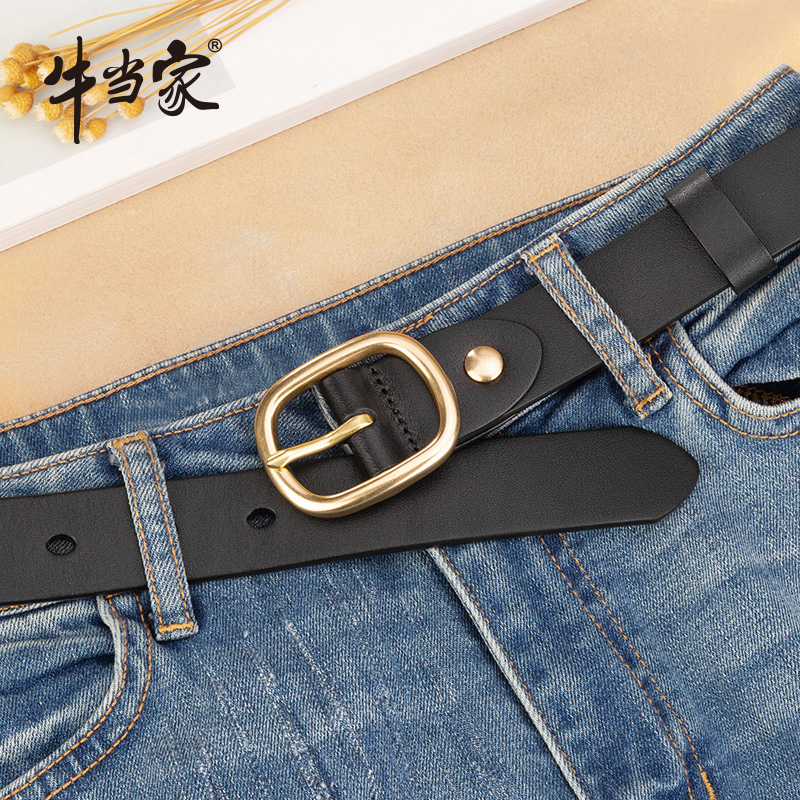 Bull When Home Lady Genuine Leather Strap Copper needle buckle belt Women round button Jeans With Korean version Ins headlayer Bull Skin