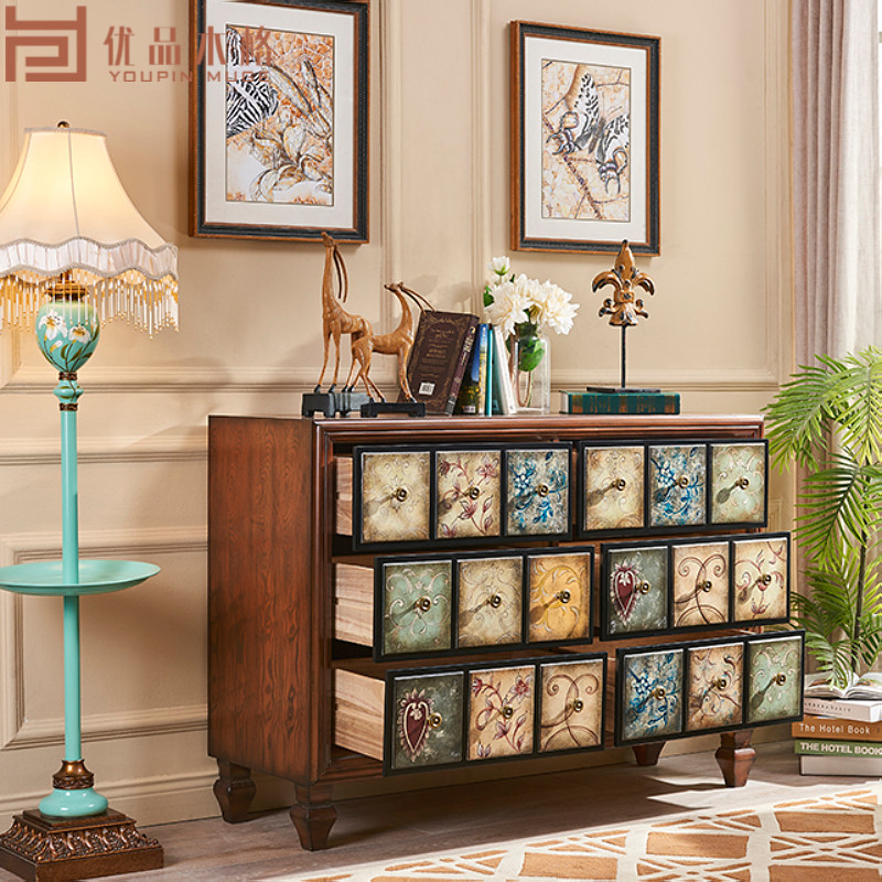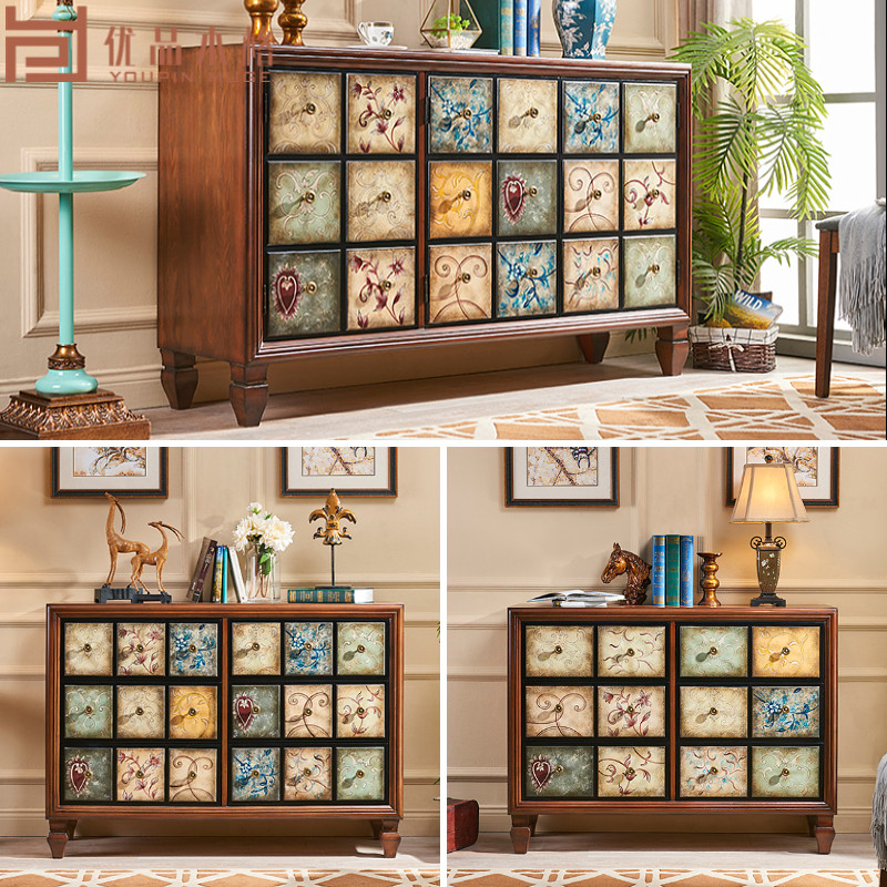 American solid wooden cupboard colored multi-layer shoe cabinet multi-functional partition porch cabinet large-capacity retro locker