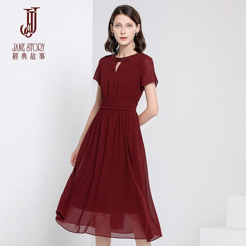 2022 new round-collar hollowed-out display of thin A-word dress with short sleeves in long skirt thin snowspun foreign dress