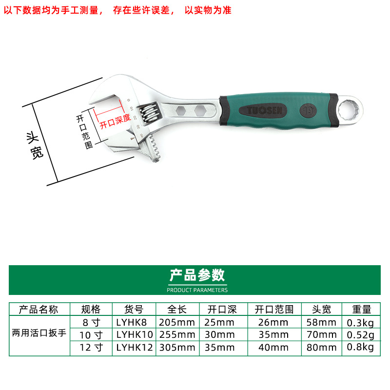Trawson multifunction water pipe pliers active wrench 8 inch 10 inch 12 inch large opening live mouth tube living dual-use wrench