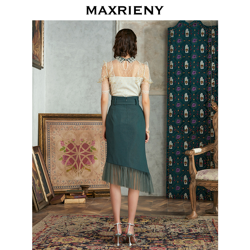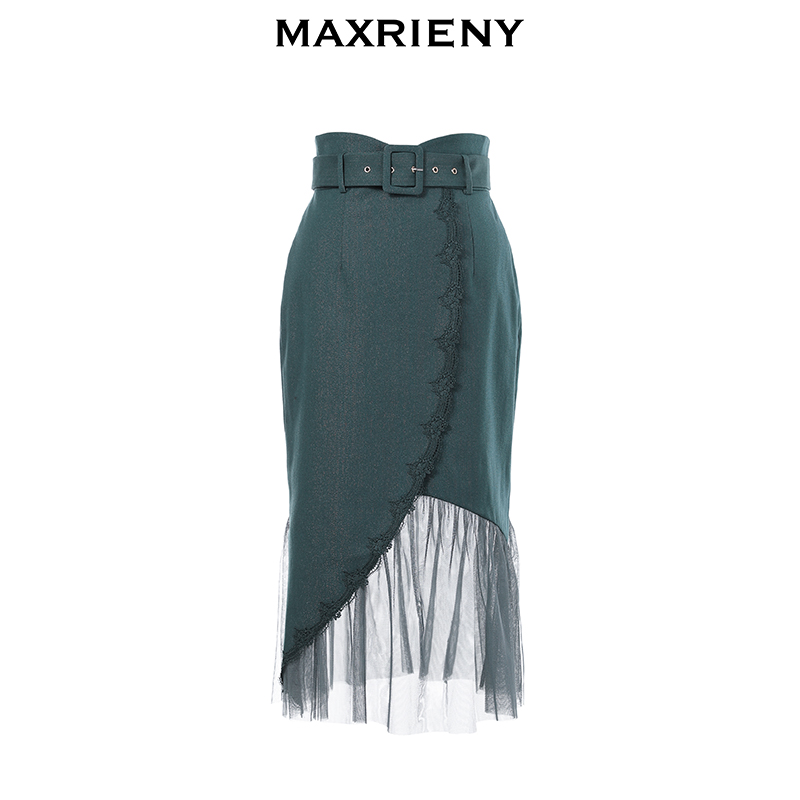 MAXRIENY RETRO WEB YARN SPLICING FISH TAIL SKIRT WOMAN SUMMER HIGH WAIST FOR A LONG VERSION OF THE FOREIGN PIE DRESS