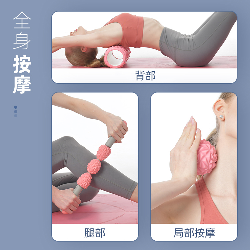 Diamond Grain Foam Shaft-Cherry Blossom Powder 33CM Diamond Grain Foam Shaft-Lake Water Blue 33CM Massage With Three Sets-Cherry Blossom Powder (33CM Foam Shaft Massage Stick Massage Ball) Massage Three