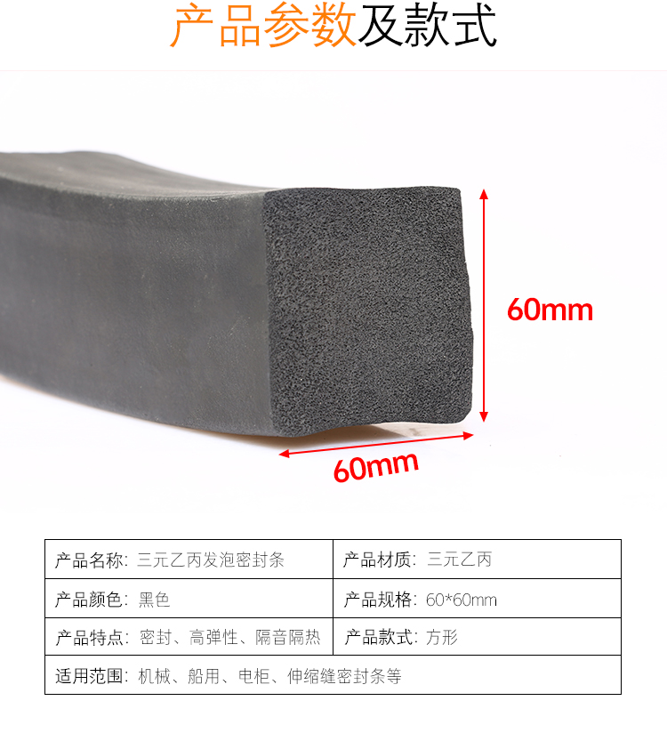 Three yuan ethylene propylene foam sponge rubber strip sealing strip epdm60*60 black flat rubber foam square strip