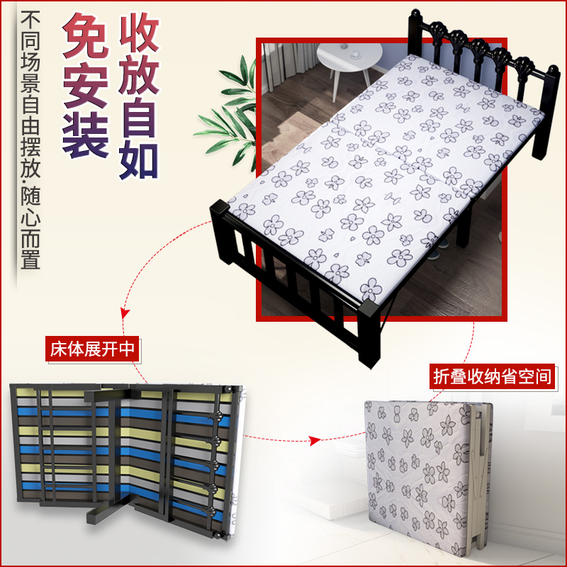 Folding Bed Single Lunch Office Nap Room Accommodation Accommodation Room Simple Portable Adult Double Wooden Iron Bed