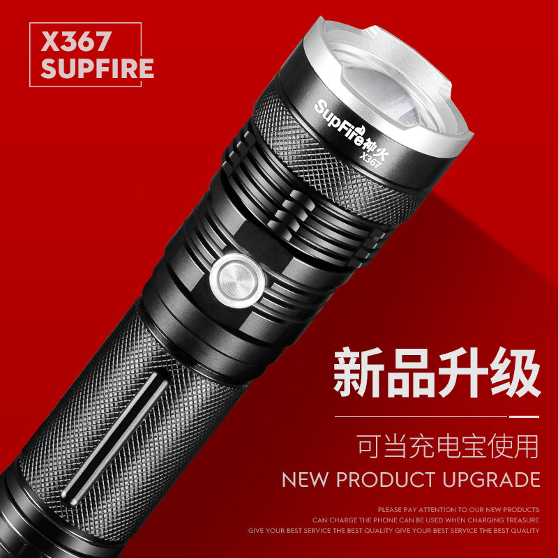 Shengjian X367 zoom strong light flashlight 26650 multi - function USB charging baby outdoor ultra - bright radial emergency light