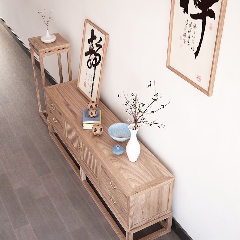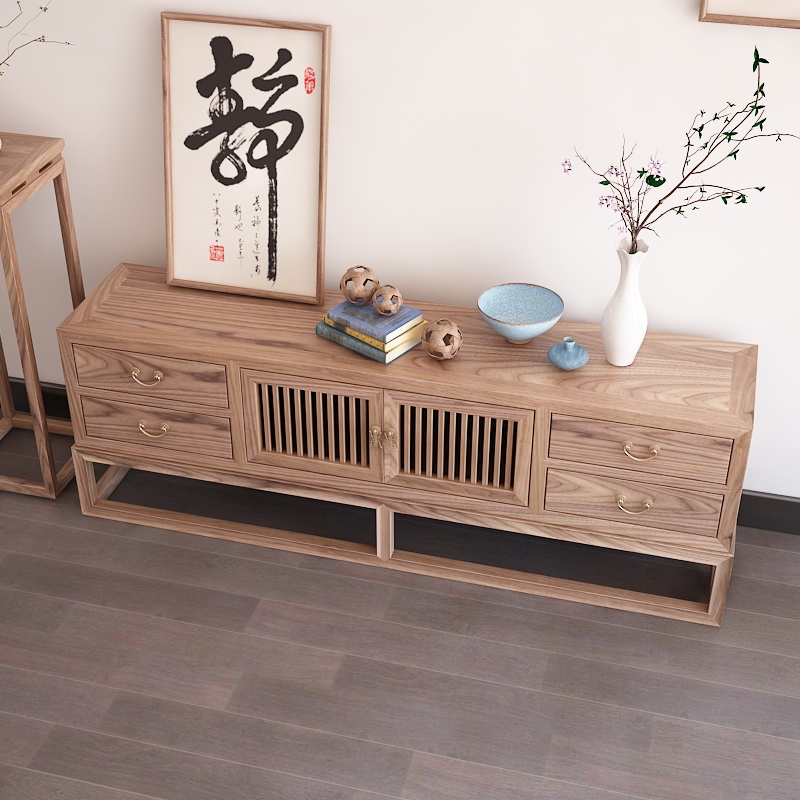 New Chinese TV Cabinet Living Room Audiovisual Background Dwarf Cabinet Elm Wood Floor Cabinet Containing Cabinet Zen Solid Wood Furniture Custom-Taobao