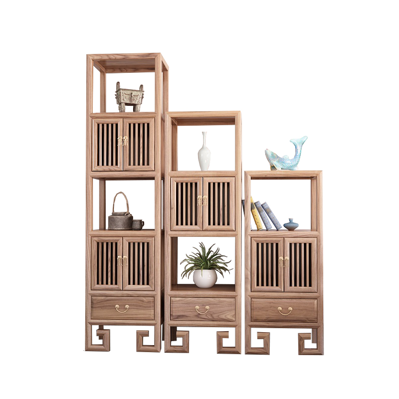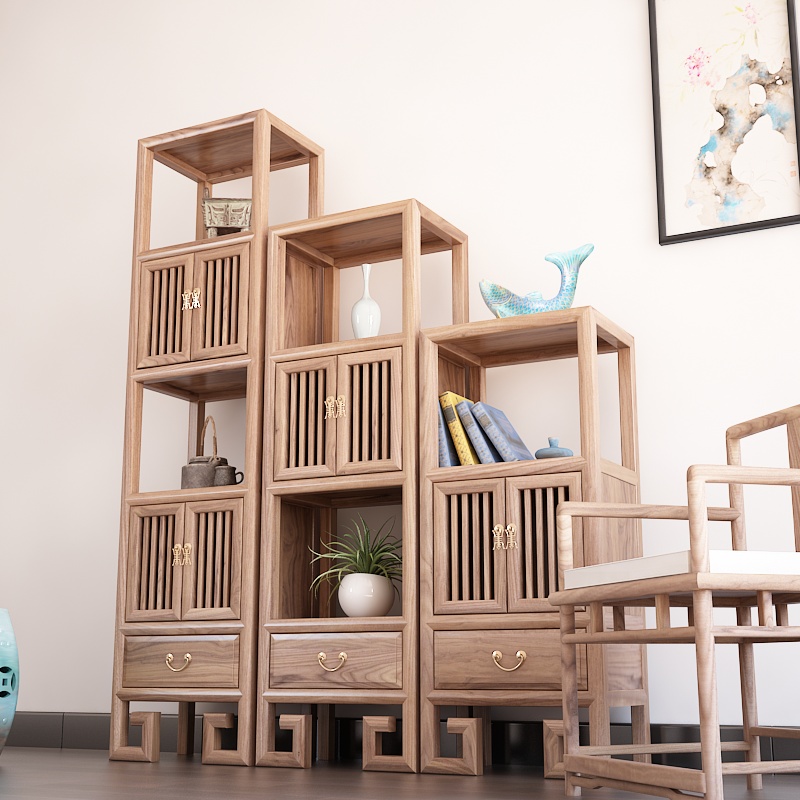 New Chinese Cabinet Zen Solid Wood Combined Shelve Old Elm Wood Bookcase Display Cabinet High And Low Cabinet Log Bogu Shelf-Taobao