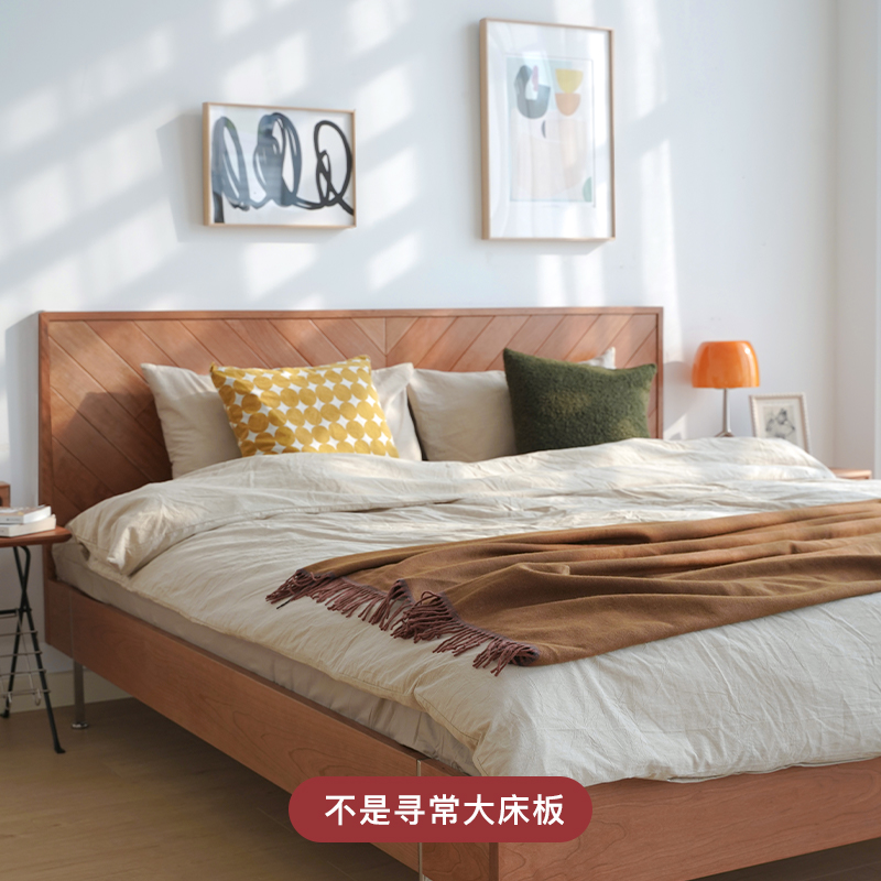minimore) peacock bed) Nordic Japanese style retro modern simple solid wood cherry wood master bedroom double bed 1 8
