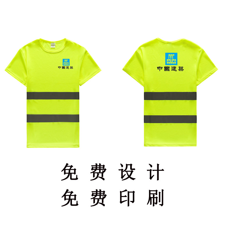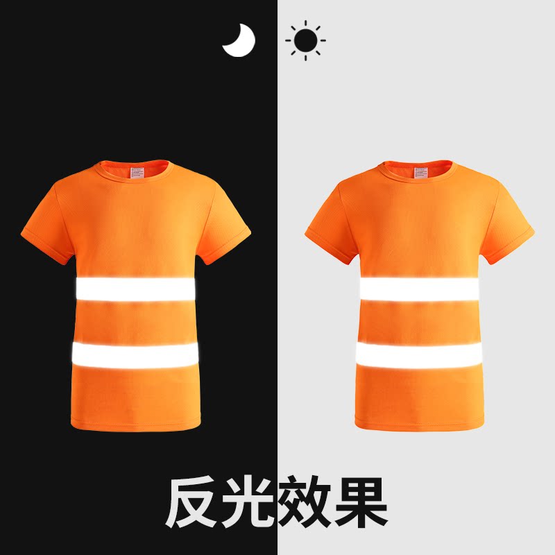 Reflective Crewneck T-shirt Summer Men and Women Managers Fluorescent Clothes Road Safety Work Clothes Sanitation Clothes Crewneck