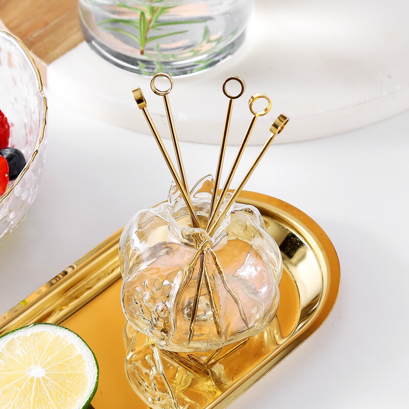 ins Nordic creative fruit sign fruit inserts upscale minimalist home stainless steel fruit fork snack fork 6 sets