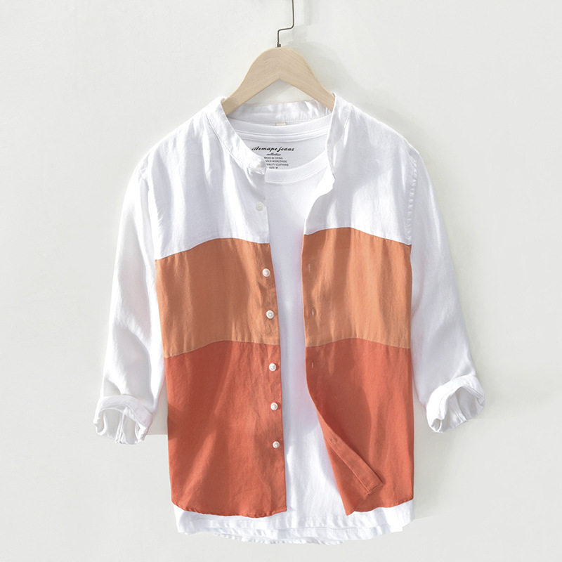 Seven-sleeve Little Linen Shirt New Style Piece Casual Shirt Shirt Shirt Linen Men Shirt