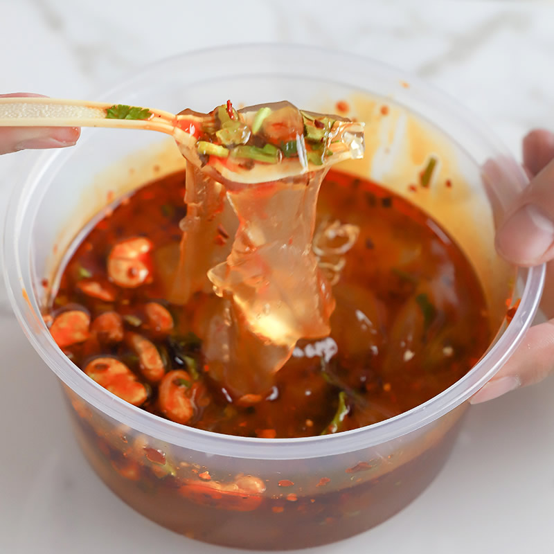 Potato starch Alum Edible water Salt water Vinegar Pepper oil Lotus bean