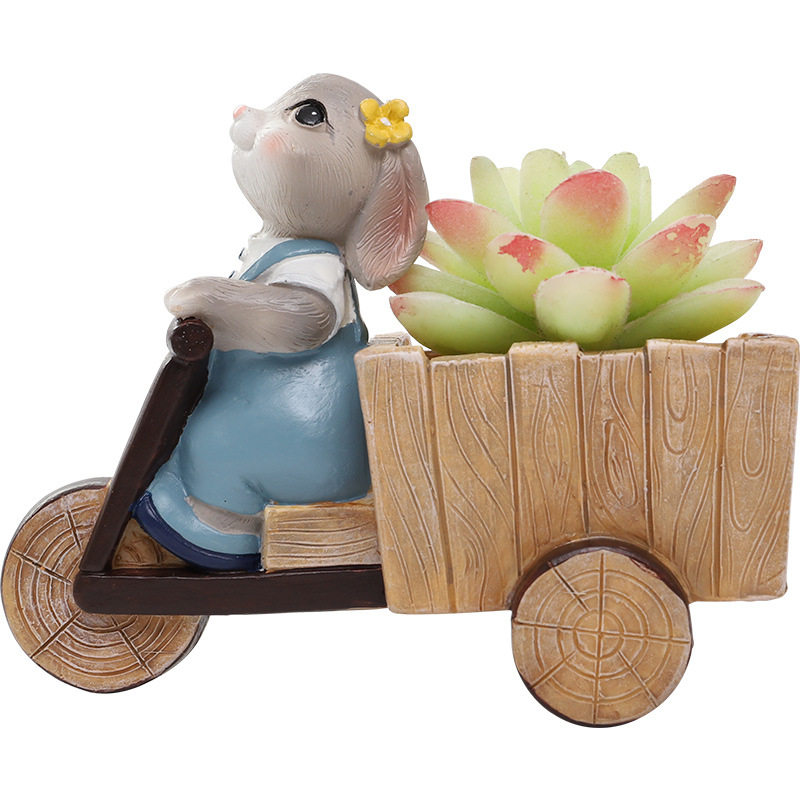 zakka Creative rabbit cart Animal Succulents Flower pot Flower vase decoration Birthday gift Home decoration