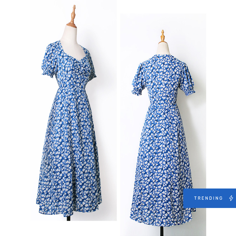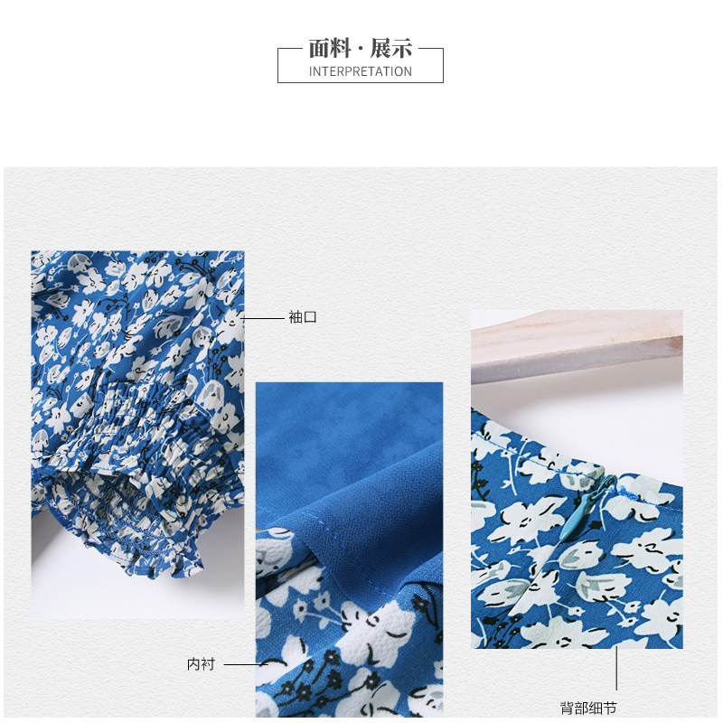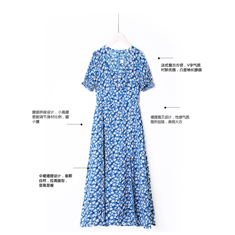 Floral dress women's collar chiffon small fresh French retro blue summer thin and careful machine fairy dress