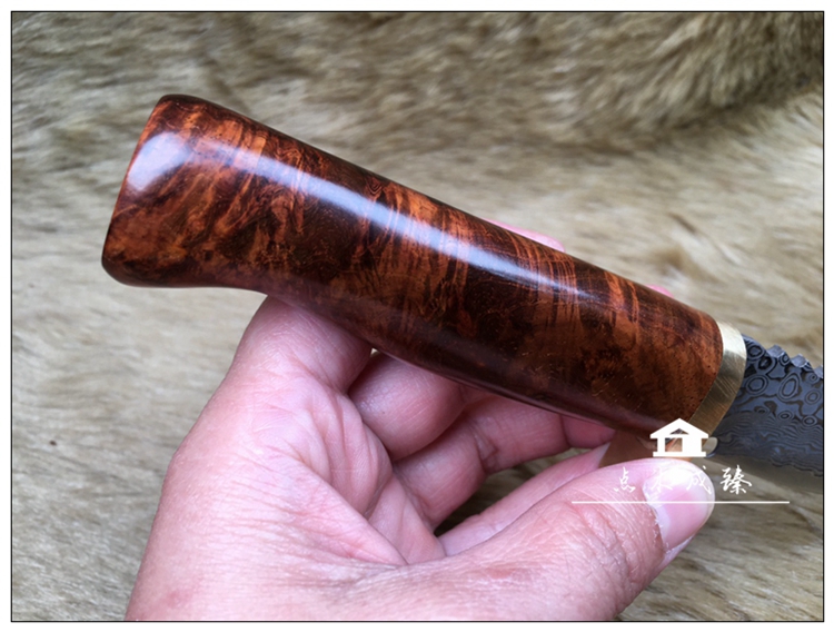 Hainan Yellow Pear Pear Pear Pear Damascus Pu-knife Steel Fruit Knife with Leather Case