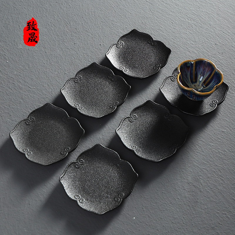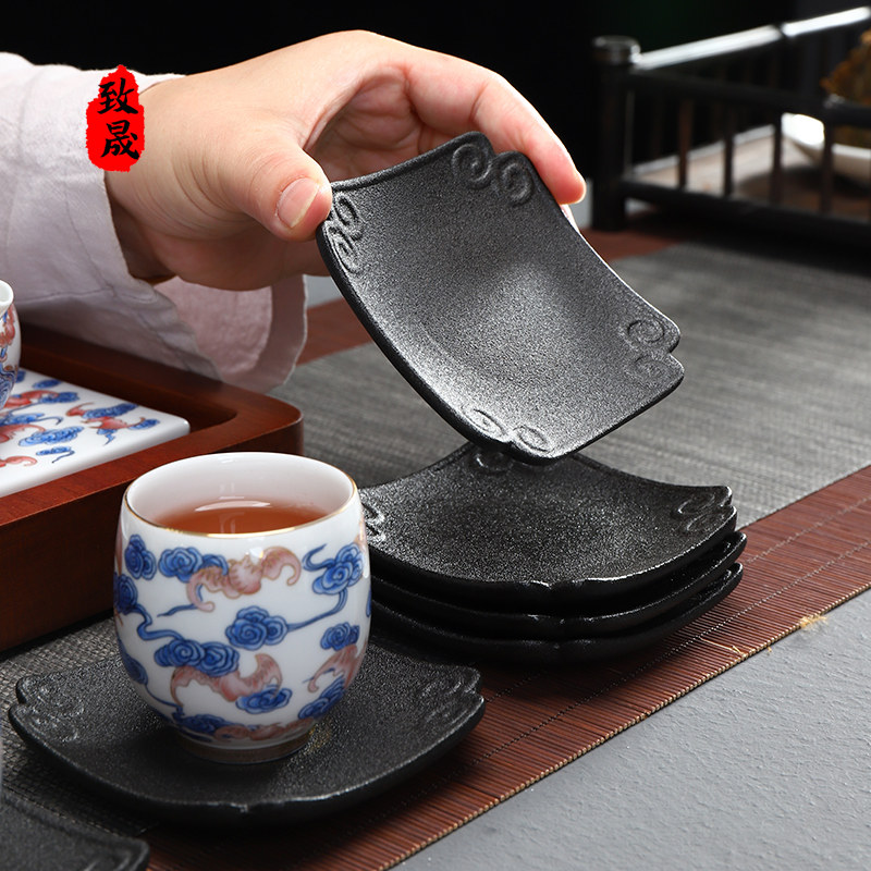 Zhisheng tea cup mat tea ceremony ceramic home simple kung fu tea mat tea set accessories coarse pottery cup holder heat insulation coaster